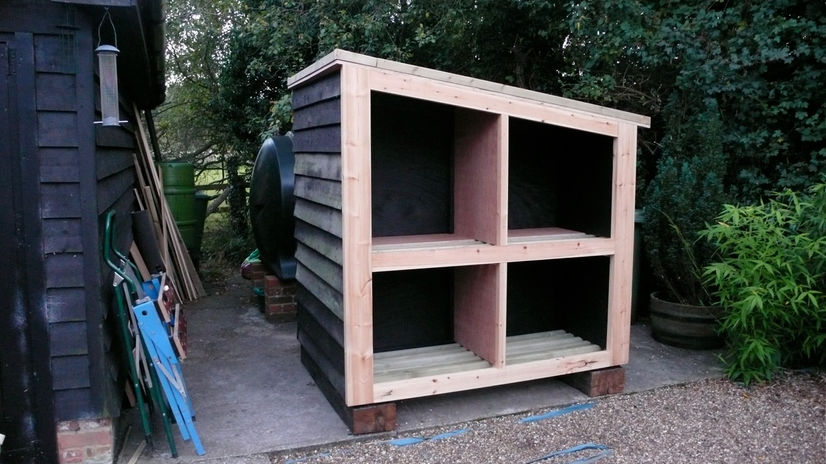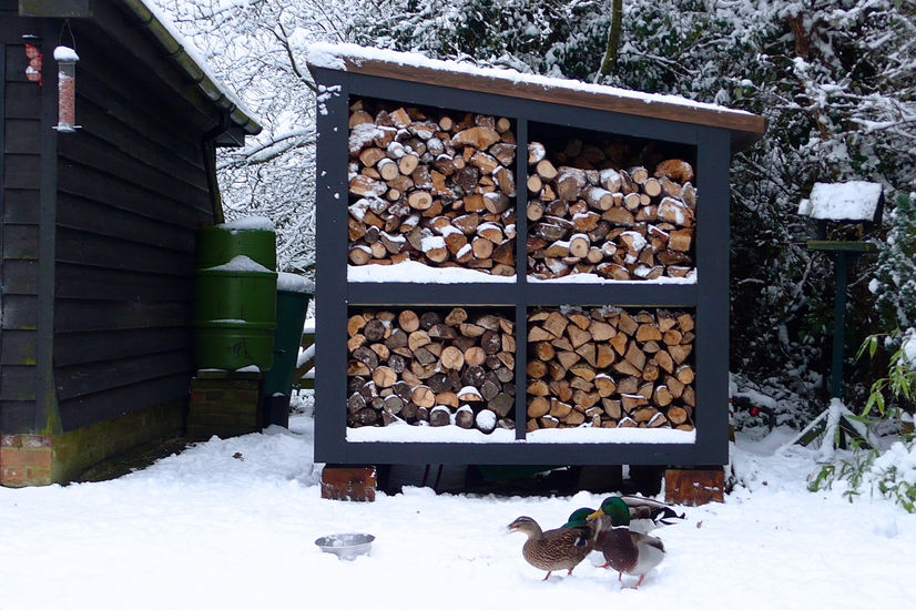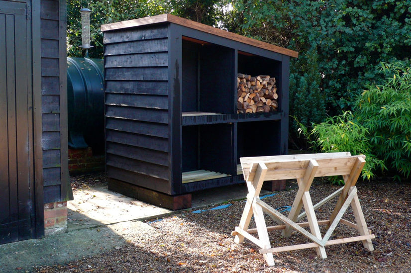 THE WOOD STORE IS RAISED ON RE-CLAIMED RAILWAY SLEEPERS TO KEEP ALL THE WOOD DRY.